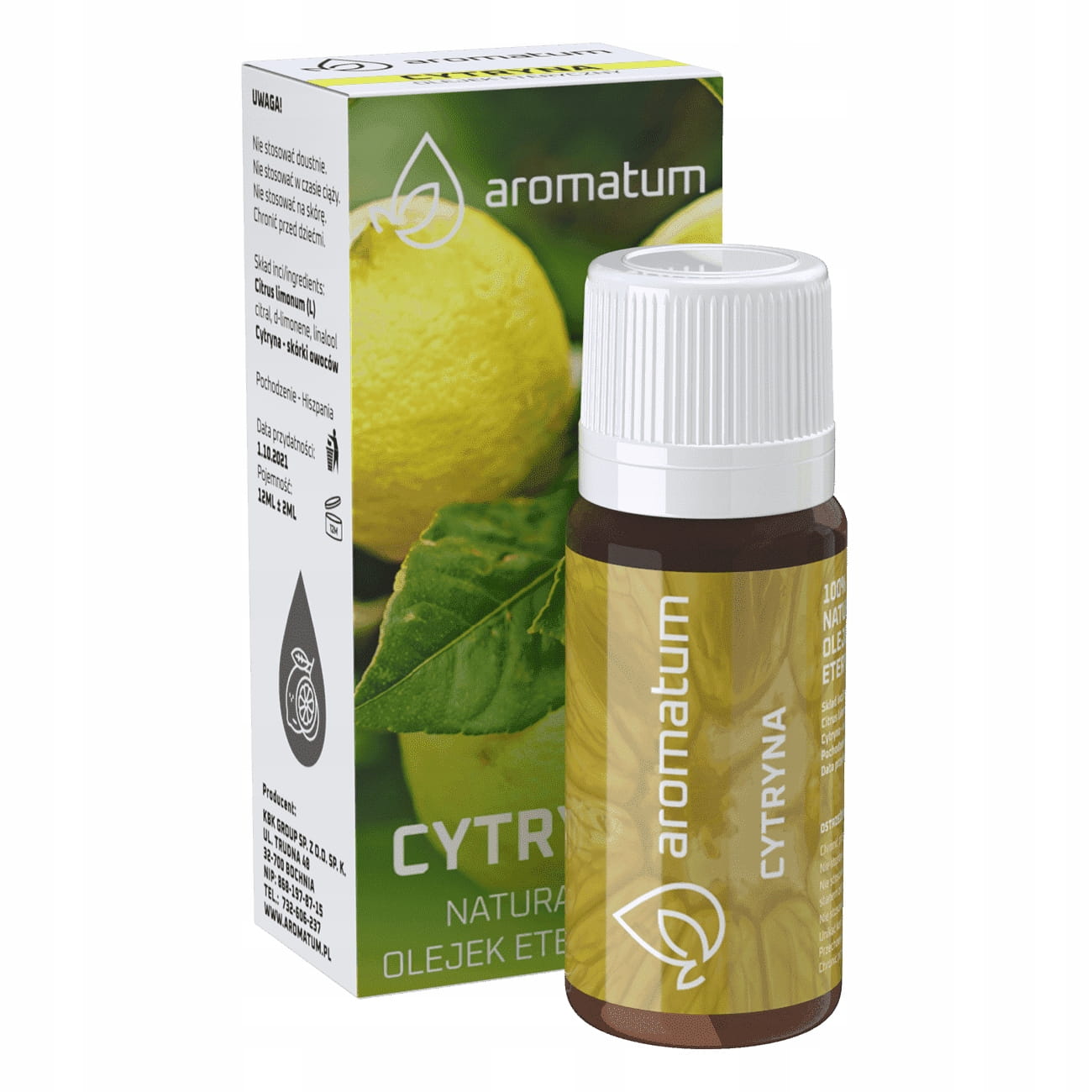 Naturalny olejek eteryczny z cytryny Aromatum (Citrus Limonum Oil) to 100% czysty olejek o świeżym, cytrusowym zapachu. Wspiera metabolizm i detoksykację, działa antybakteryjnie, rozświetlająco i antycellulitowo. Idealny do masażu, kąpieli, aromaterapii i kosmetyków DIY.