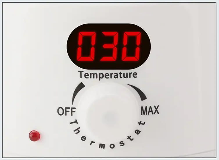 - Precyzyjna kontrola temperatury: Termostat pozwala użytkownikowi precyzyjnie regulować temperaturę wosku, co jest istotne w celu uzyskania optymalnej konsystencji wosku do aplikacji.