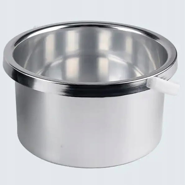 Aluminiowe wiaderko przeznaczone do rozpuszczania wosku twardego wyposażone jest w rączkę, która ułatwia wyjmowanie pojemnika. Dzięki temu urządzenie jest łatwiejsze do utrzymania w czystości.