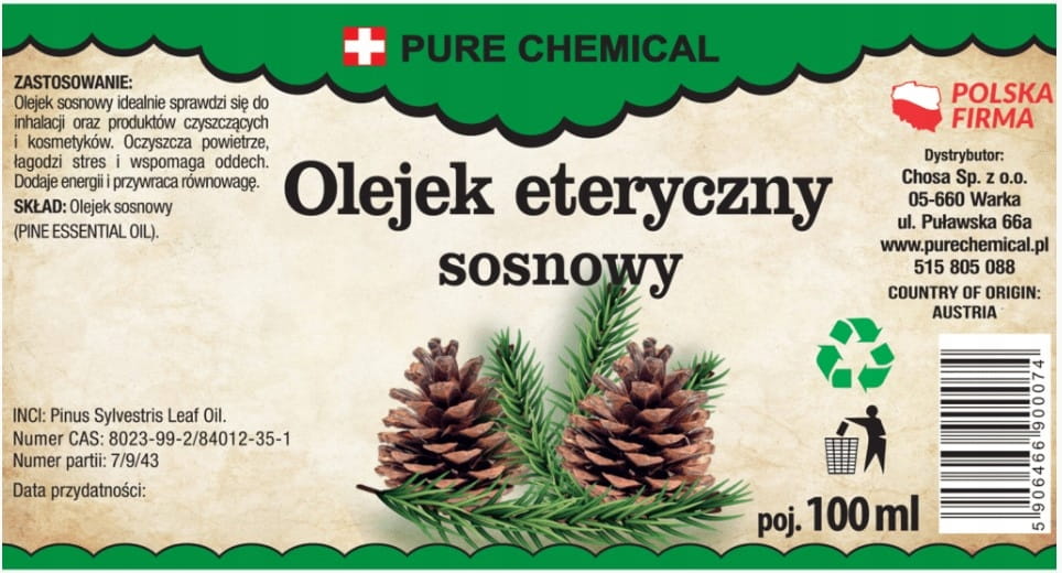 - skład: 100% olejek eteryczny sosnowy