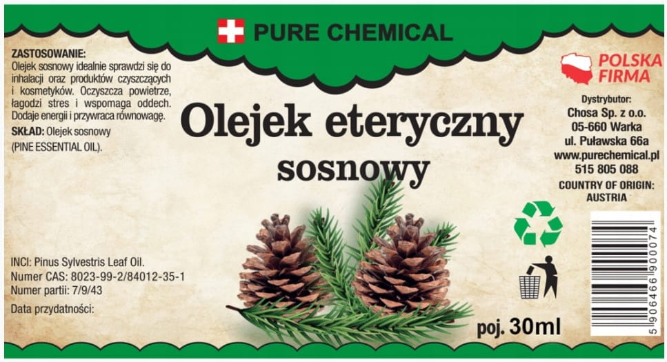 - skład: 100% olejek eteryczny sosnowy